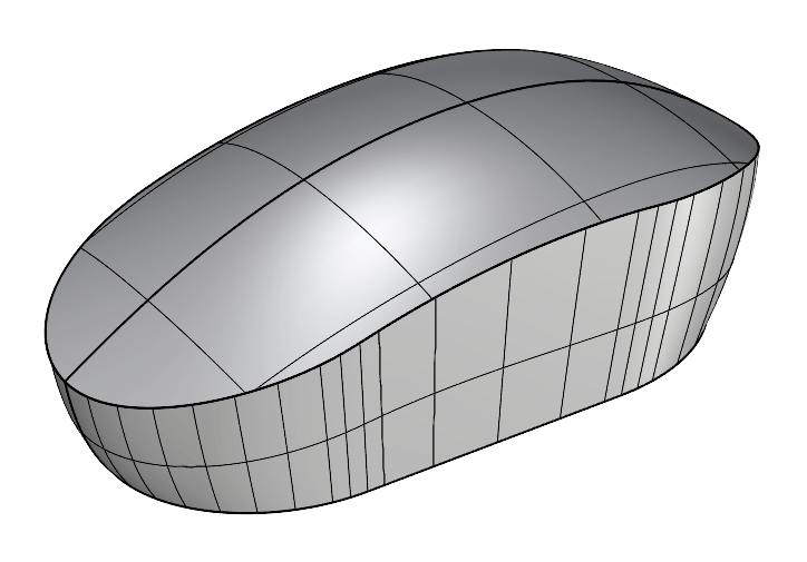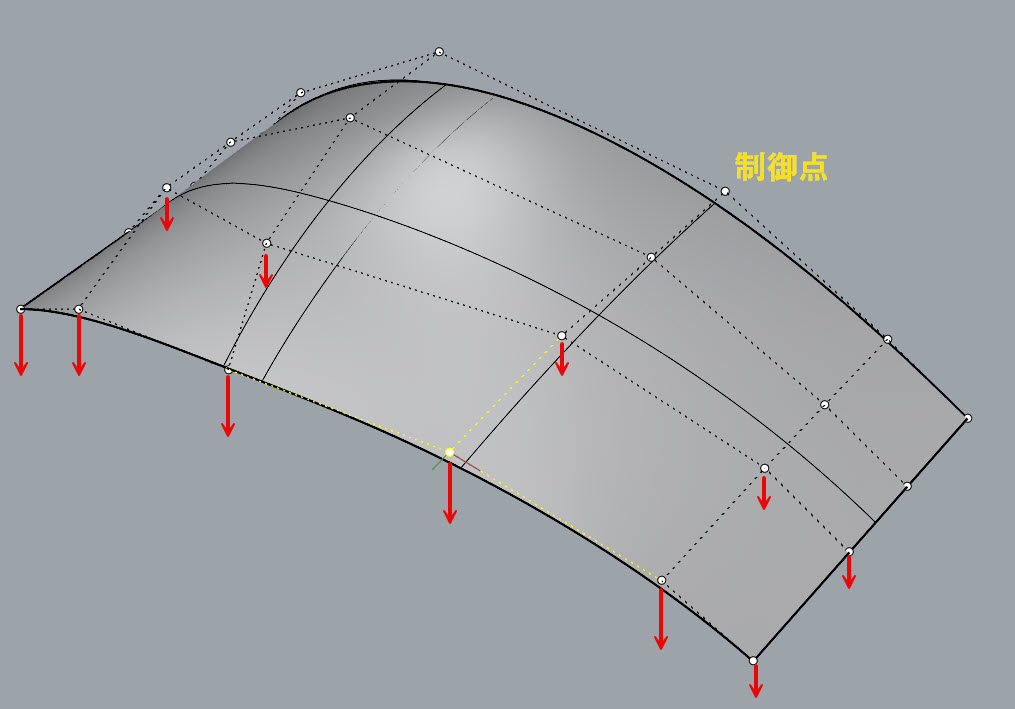 若干左右の曲率を大きくした方が良いと感じられるのでサーフェスに戻って修正します